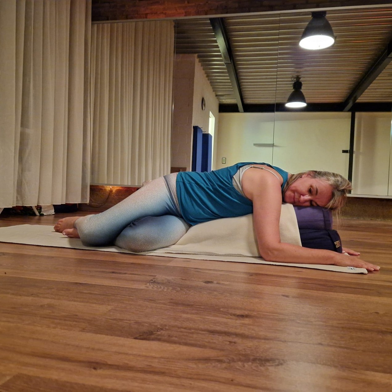 Restorative Yoga is een diepe, herstellende vorm van yoga waarbij je volledig wordt ondersteund door kussens en dekens, zodat je lichaam zonder inspanning kan ontspannen. Je blijft vaak langere tijd in elke houding — meestal 5–10 minuten — wat de spieren en het bindweefsel de kans geeft om diep te verzachten. In die langzame stilte kalmeert je zenuwstelsel, lossen opgeslagen spanningen en emoties op en krijgt het lichaam ruimte om te herstellen. Deze les helpt bij herstel, stressvermindering en het opladen van je energie. Perfect als je behoefte hebt aan rust, verzachting en even helemaal niets.